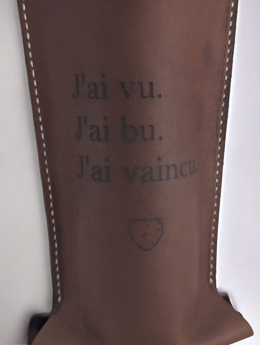 Sac de cuir pour bouteille de vin - j'ai vu j'ai bu j'ai vaincu